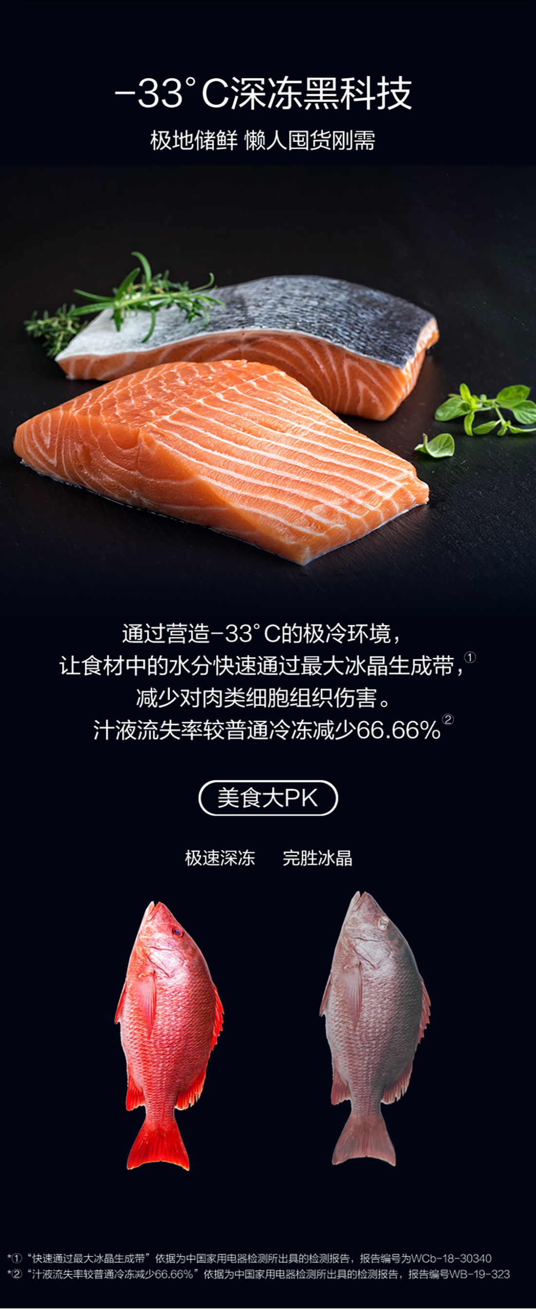 搭載-33℃深凍鎖鮮科技,肉汁飽滿更長久。采用離子長效抗菌凈味,抗菌率高達(dá)99.9%。風(fēng)冷無霜,拒絕風(fēng)干,食材水潤新鮮。